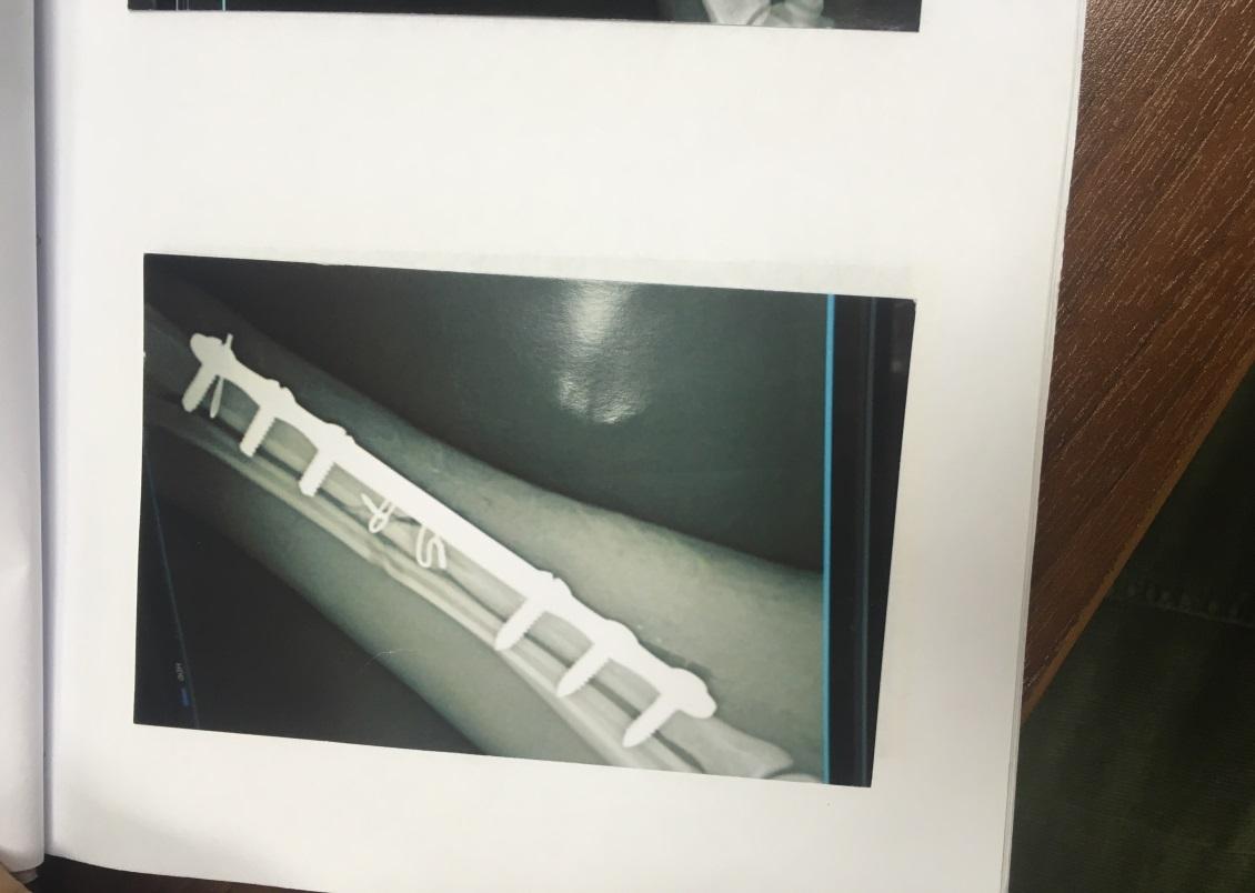 - Фотоматериалы по гражданскому делу №2-1/2022 от 25.01.2022 в количестве 4 штук, включающие рентгеновские снимки и общее фото конечности животного после оперативного вмешательства.