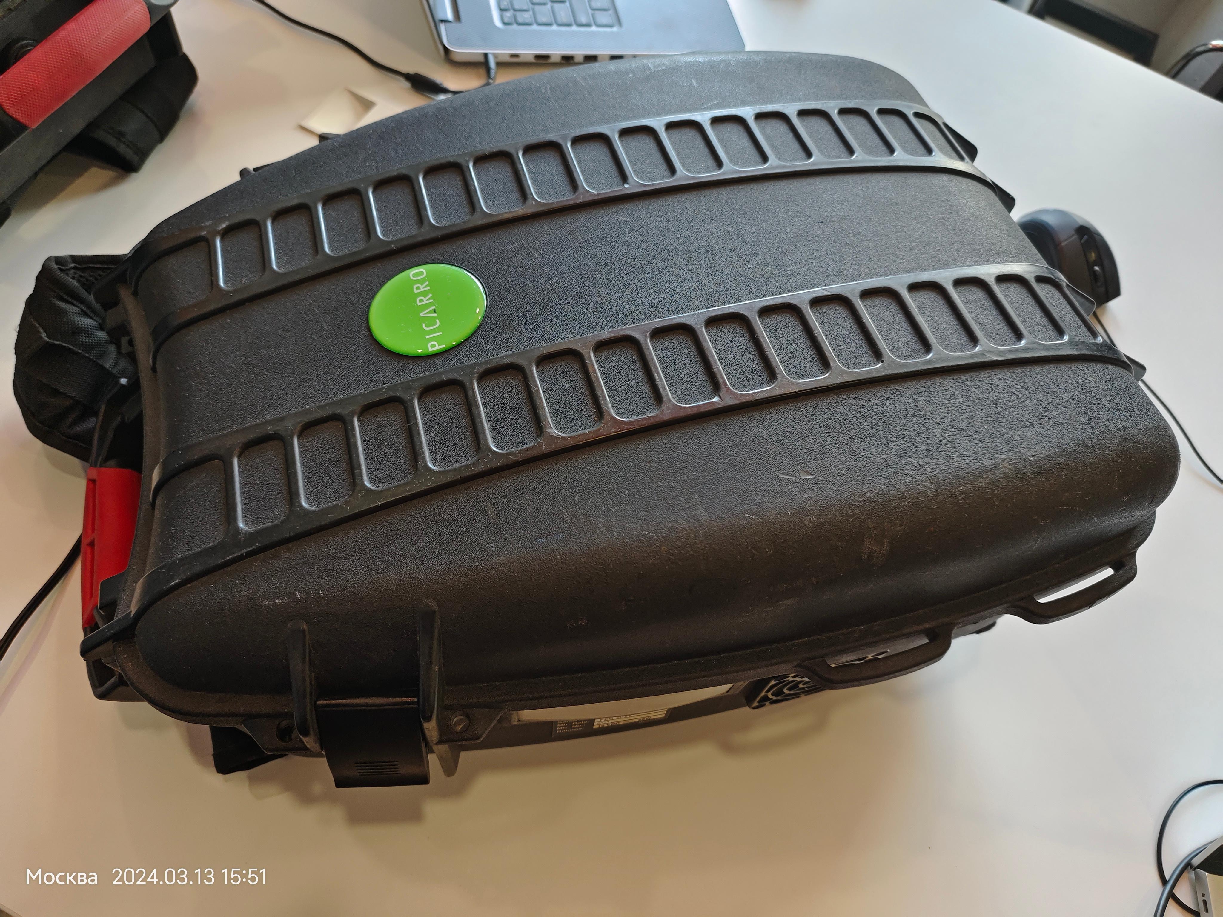 - Газоанализатор Picarro G4301 (без серийного номера) – мобильный (носимый) анализатор углекислого газа, метана, паров воды. Характеристики: малый вес (11.3 кг), энергопотребление (25 Вт), встроенная батарея до 8 часов работы, встроенный насос, возможность Wi-Fi соединения, оптимизирован для измерений в "поле" и в движении с использованием запатентованной технологии CRDS.