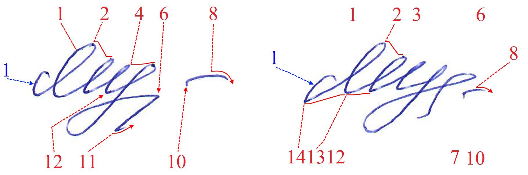 Среди представленных материалов были экспериментальные образцы почерка и подписей, выполненные в различных условиях, которые использовались для сравнительного анализа.