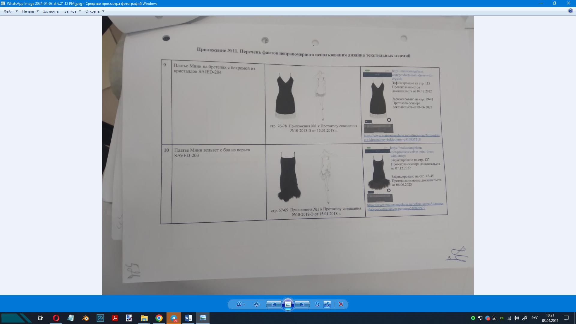 Объектами исследования выступали материалы дела, содержащие изображения и описания текстильных изделий, преимущественно женской одежды, в частности, платьев, юбок и костюмов. Эти объекты были представлены для сравнительного анализа их дизайнерских решений.