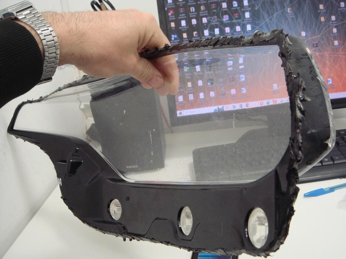 Объектами исследования являлись два стекла фар из поликарбоната, демонтированные с автомобиля. Особенностью объектов стало наличие многочисленных повреждений, сколов и трещин в угловых частях рассеивателей, вероятно, образованных в процессе эксплуатации и демонтажа.