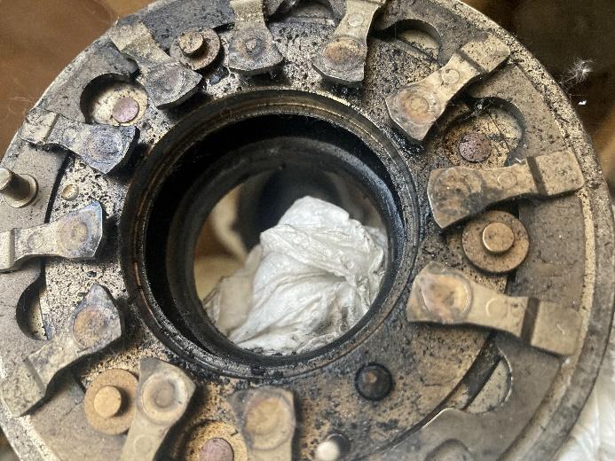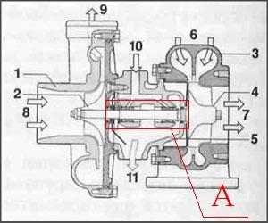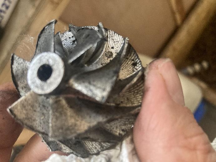 - Турбокомпрессор, демонтированный с двигателя, также был исследован в разобранном виде. Его компоненты включали корпус, турбинное и центробежное колесо, а также вал турбины.