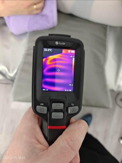 В ходе работы эксперты столкнулись с рядом сложностей, основной из которых стало отсутствие исчерпывающей технической документации от производителя аппарата MLG. В представленном руководстве по эксплуатации не содержались ключевые сведения о назначении аппарата (медицинское или косметологическое применение), его полных технических характеристиках, противопоказаниях, классе потенциального риска, а также о порядке технического обслуживания и сроках службы. Это значительно усложнило объективную оценку заявленных параметров и безопасности прибора. Для преодоления данной сложности и получения необходимых данных, была проведена натурная процедура прессотерапии с инструментальным контролем температур с использованием цифрового термометра RGK CT-105 и инфракрасного тепловизора Guide T120. В процессе исследования проверялись требования ГОСТ Р ЕН 13018–2014, ГОСТ Р 51293–2022, а также общие требования к надёжности и качеству продукции согласно ГОСТаи 2.601–2013, 27.102–2021 и 15467–79.