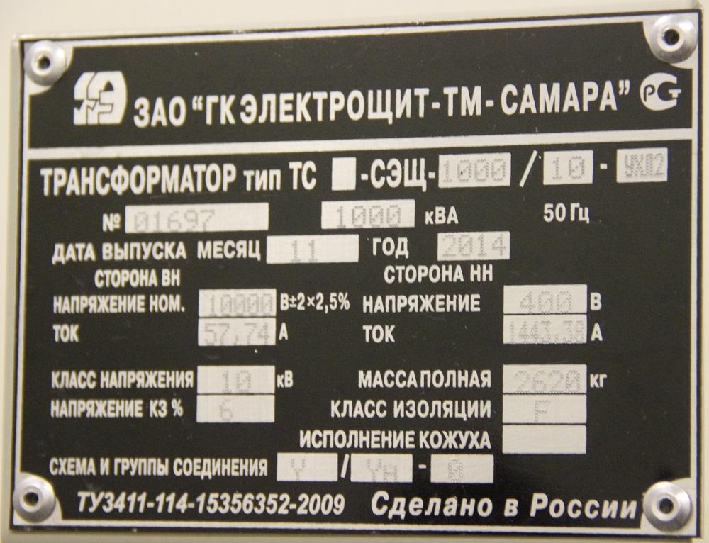 - Полное наименование: Трансформатор силовой сухой типа ТС-СЭЩ-1000/10-УХЛ2