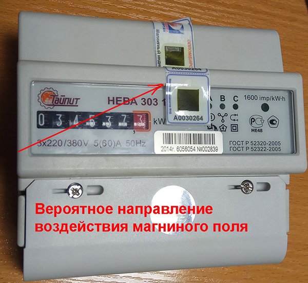 Предметом исследования стали прибор учета электрической энергии и установленная на нем магнитная пломба. Прибор учета является трехфазным счетчиком активной электрической энергии, предназначенным для использования в различных типах помещений, включая жилые, общественные, промышленные объекты и объекты энергетики. Его конструкция включает измерительный модуль, датчики тока и отсчетное устройство, а также системы защиты от несанкционированного доступа. Магнитная пломба, в свою очередь, представляет собой специализированный индикатор воздействия магнитного поля, изменяющий свою структуру при его влиянии. Она оснащена несколькими степенями защиты для предотвращения манипуляций.