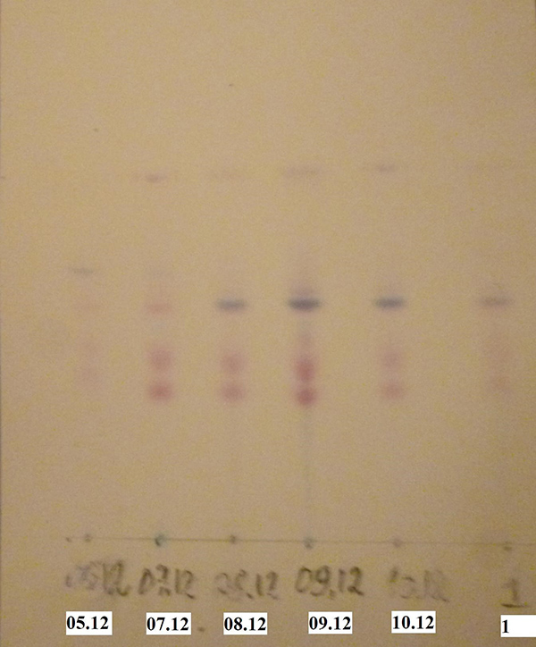 - Простой вексель серии А №1 от 14.10.2011. Этот документ был исследован в оригинале, также на листе белой офисной бумаги формата А4. Печатный текст выполнен красящим веществом черного цвета. Оттиск печати проставлен штемпельной краской синего цвета, а подпись — пастой для шариковой ручки синего цвета. Документ не содержал признаков агрессивного воздействия, что позволило применить более широкий спектр аналитических методов.